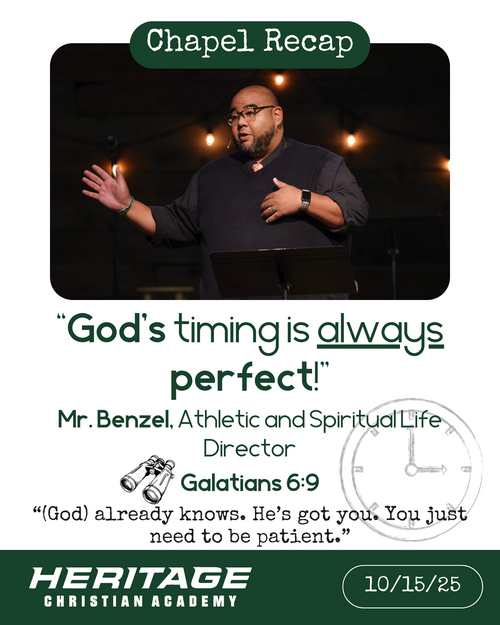 Our students always enjoy hearing from Mr. Benzel, our Athletic and Spiritual Formations Director, at the chapel. Today, he took them back to 2001, the last time the Mariners reached the ALCS. He used the example of fans who waited 24 years to illustrate the importance of patiently trusting in God and His perfect timing in all areas of our lives. Be sure to check out Galatians 6:9 at home!