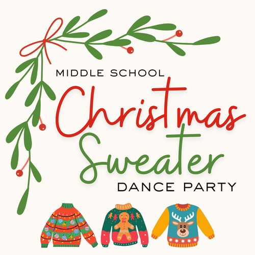 Join us after school on Friday, December 5th from 2:45–4:00 PM for our Christmas Sweater Dance Party!